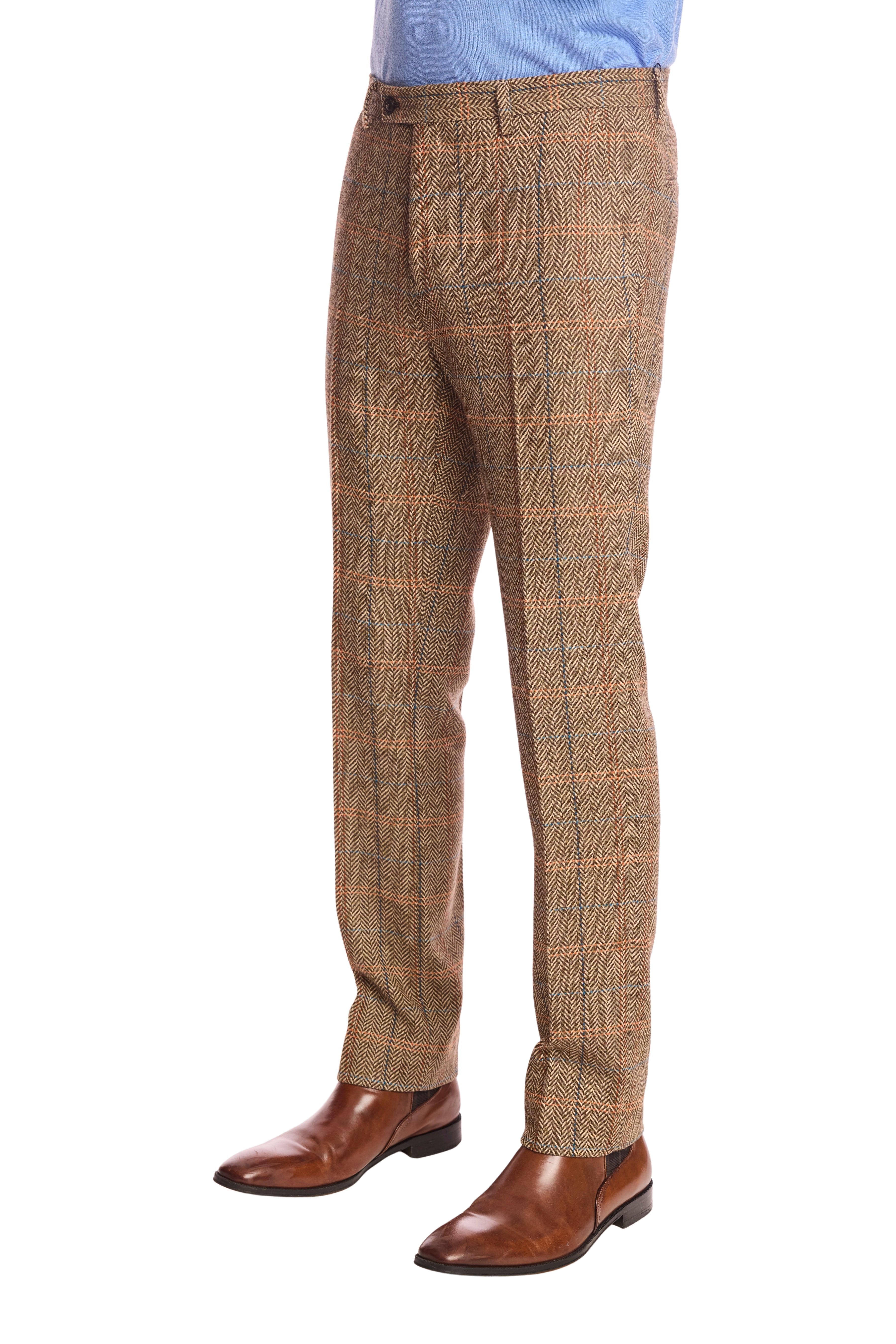 The Downing Pant in Brown Orange Multi Herringbone is a refined take on classic fall tailoring. Crafted in a slim fit with sleek slant front and welt back pockets, it offers rich texture and subtle depth without overwhelming the silhouette. Paired with the matching suit jacket, it creates a sophisticated ensemble that embodies timeless elegance and seasonal style.